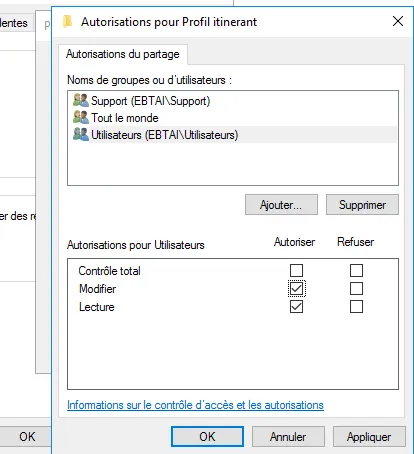 Windows Server 2016 · AD DS · Roaming Profiles · ebtai.fr domain