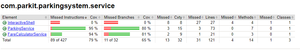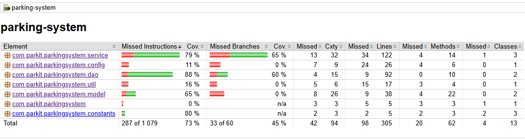 Parkit — JaCoCo report